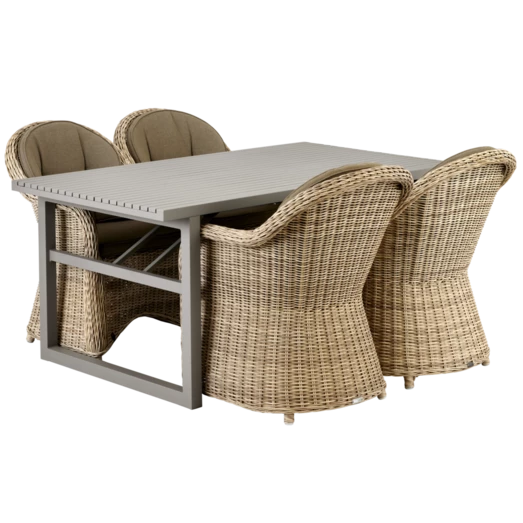 Det nordiske formsprog og det elegante, moderne design kendetegner denne serie. Fra det generøse spisebord med plads til familie og venner til komfortable stole, sideborde, loungestole og meget mere, der gør din terrasse til det perfekte sted at slappe af og socialisere.
