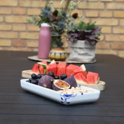 Havebordet er fremstillet i nonwood, som er et plastikmateriale og bordet kan derfor tage skade, hvis glasartikler står direkte på bordpladen i skarpt sollys. Der kan med fordel anvendes bordskånere eller dækservietter for at undgå dette.