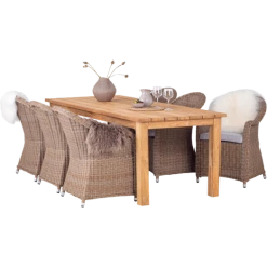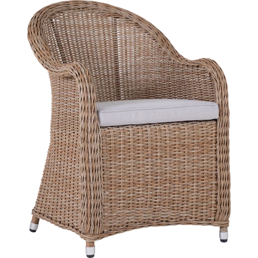 Havestolen er fremstillet af flettet kunststof i beige/sand naturfarve. Dermed er stolen det vedligeholdelsesfrie valg til den nemme have, med frirum til masser af afslapning og hygge.