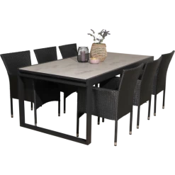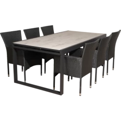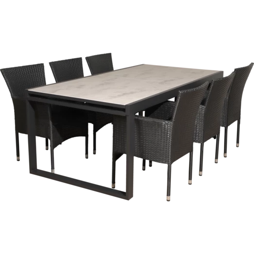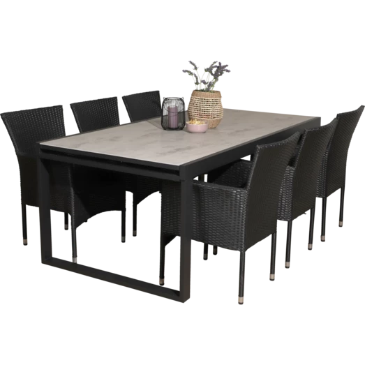 Til havemøbelsættet medfølger 6 Alba havestole fremstillet i sort 4-string polyrattan, hvilket gør den nem at rengøre og vedligeholde. Havestolen er godkendt op til 110 kg og kan stables, hvilket gør den nem at opbevare hvis vejret ikke tillader hygge på terrassen eller når sæsonen skifter. For ekstra komfort kan der tilkøbes havehynder, se vores udvalg her.