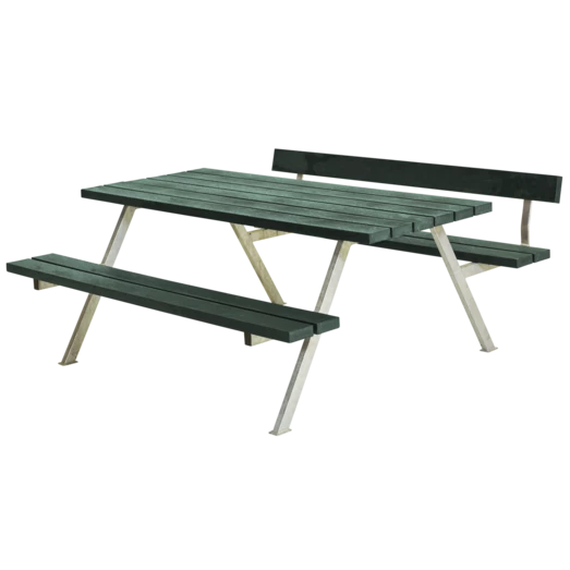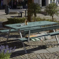 Dette bord-bænkesæt fra Plus, er produceret med genbrugsmaterialer. Med dette sæt får du et klassisk holdbart møbel til din have, som har et enkelt udtryk og derfor passer ind i de fleste danske hjem. Benene er desuden resistent overfor rust, da det er produceret i varmgalvaniseret stål. Plus Alpha Bord-bænkesættet fåes i flere længder, farver og varianter med og uden ryglæn, derfor kan du vælge den løsning der passer til dig.