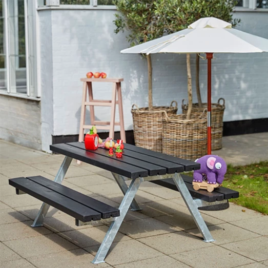 Børnene synes både det er sjovt og behageligt at sidde ved sit eget bord-bænkesæt i haven. Her har de fået deres eget område i haven, hvor tingene kan ske i børnehøjde. Sættet er produceret i en god robust kvalitet, som giver det massere anvendelsesmuligheder. Bordet kan foruden spisning og madlavning også bruges til kreative aktiviteter og leg, det er kun fantasien der sætter grænser – og her har børnene de bedste betingelser, da det er let for dem at komme op og ned af bænken og derfor kan de blot fokusere på at hygge sig.