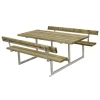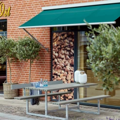 Nyder du at sidde i haven og nyde dens omgivelser, samtidig med at du ikke behøver afgive så meget plads og tænke på hvor stolene nu blev sat sidst? Her får du et elegant og enkelt bord-bænkesæt og kan rumme 6 personer.