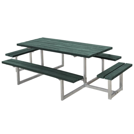 Nyder du at sidde i haven og nyde dens omgivelser, samtidig med at du ikke behøver afgive så meget plads og tænke på hvor stolene nu blev sat sidst? Her får du et elegant og enkelt bord-bænkesæt og kan rumme 6 personer.