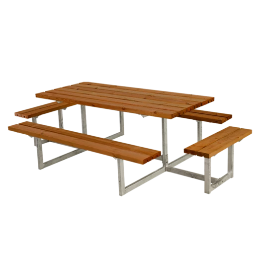 Nyder du at sidde i haven og nyde dens omgivelser, samtidig med at du ikke behøver afgive så meget plads og tænke på hvor stolene nu blev sat sidst? Her får du et elegant og enkelt bord-bænkesæt og kan rumme 6 personer.
