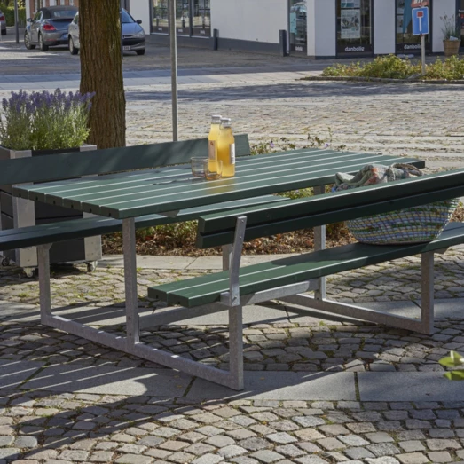 Nyder du at sidde i haven og nyde dens omgivelser, samtidig med at du ikke behøver afgive så meget plads og tænke på hvor stolene nu blev sat sidst? Her får du et elegant og enkelt bord-bænkesæt og kan rumme 6 personer.