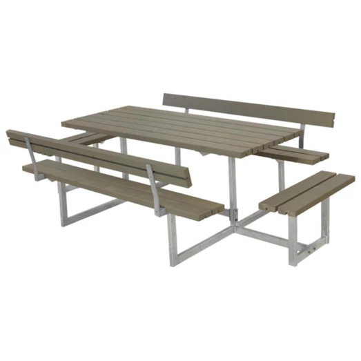 Nyder du at sidde i haven og nyde dens omgivelser, samtidig med at du ikke behøver afgive så meget plads og tænke på hvor stolene nu blev sat sidst? Her får du et elegant og enkelt bord-bænkesæt og kan rumme 6 personer.