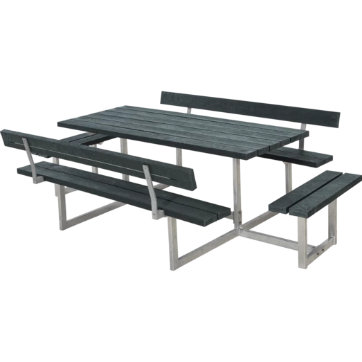 Nyder du at sidde i haven og nyde dens omgivelser, samtidig med at du ikke behøver afgive så meget plads og tænke på hvor stolene nu blev sat sidst? Her får du et elegant og enkelt bord-bænkesæt og kan rumme 6 personer.