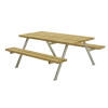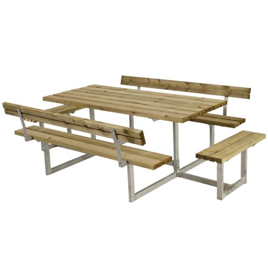 Nyder du at sidde i haven og nyde dens omgivelser, samtidig med at du ikke behøver afgive så meget plads og tænke på hvor stolene nu blev sat sidst? Her får du et elegant og enkelt bord-bænkesæt og kan rumme 6 personer.