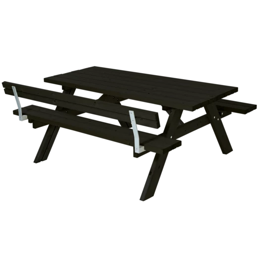 Vi alle husker dette klassiske bord-bænkesæt med de opklaplige sæder, som gør at sæderne beskyttes mod vind og vejr, men også at bænkene er fri for vand og fugleklatter. Sættet er særdeles populært både i haven, virksomheden og institutionen. Den holdbare konstuktion gør at du vil opleve et bord-bænkesæt der holder i mange år, og du kan lade det stå ude i alle årstiderne – så længe plankerne vedligeholdes.