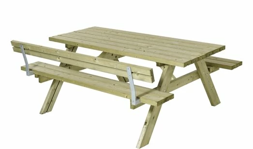 Vi alle husker dette klassiske bord-bænkesæt med de opklaplige sæder, som gør at sæderne beskyttes mod vind og vejr, men også at bænkene er fri for vand og fugleklatter. Sættet er særdeles populært både i haven, virksomheden og institutionen. Den holdbare konstuktion gør at du vil opleve et bord-bænkesæt der holder i mange år, og du kan lade det stå ude i alle årstiderne – så længe plankerne vedligeholdes.