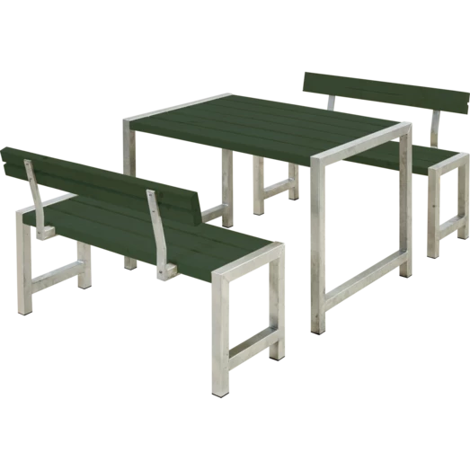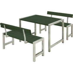Dette bord/bænkesæt indbyder til at samle familien, rundt om det bordet. Her kan rammerne skabes for de hyggelige sommer stunder på terassen, hvor det firkantede bord/bænkesæt indbyder til snak og grin på kryds og tværs af bordet.