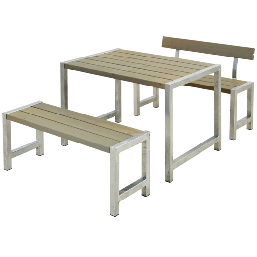 Dette bord/bænkesæt indbyder til at samle familien, rundt om det bordet. Her kan rammerne skabes for de hyggelige sommer stunder på terassen, hvor det firkantede bord/bænkesæt indbyder til snak og grin på kryds og tværs af bordet.
