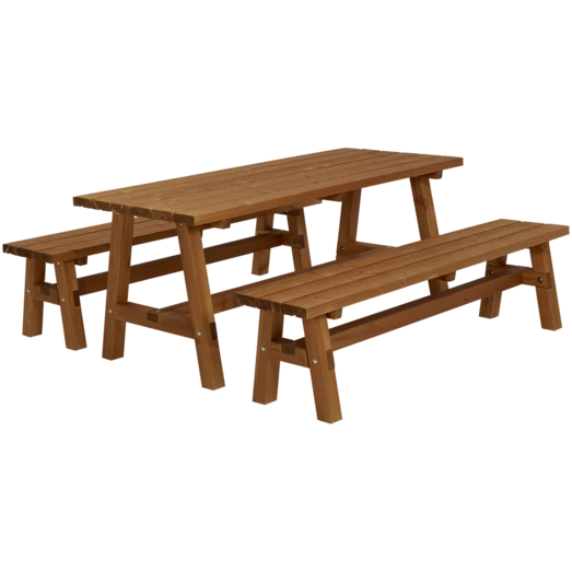 - Bænk: 117x37x46 cm, Siddepladser til 6 personer (3 på hver bænk)
