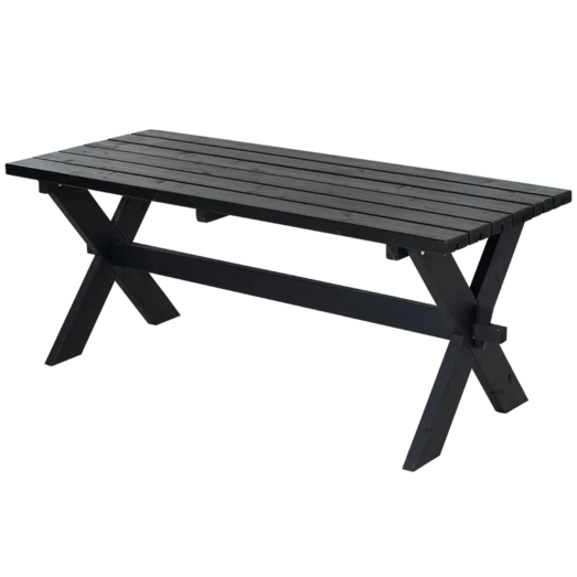 Ryk det moderne plankebord ud og nyd de massive nåletræsplanker på 42×116 mm. Bordet står solidt på de 42×116 massive træ fødder.