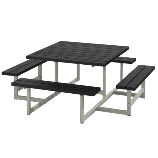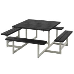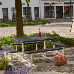 Ét bord-bænkesæt er det oplagte samlingspunkt i haven, hvor man kan se sig 360 grader omkring. Dermed kan du roligt lade børnerne lege i haven, mens I sidder roligt og nyder haven. Dette bord-bænkesæt er desuden det oplagte samtale bord, hvor man kan snakke på kryds og tværs og alle føler de er med i samtalen.