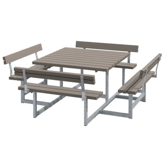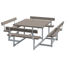 Dette bord/bænkesæt indbyder til at samvær, hyggelige og snaksagelige stunder i de udendøres omgivelser. Her kan rammerne skabes for de hyggelige sommer stunder på terassen, hvor det firkantede bord/bænkesæt indbyder til snak og grin på kryds og tværs af bordet.