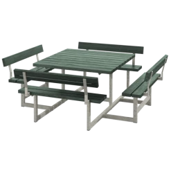 Dette bord/bænkesæt indbyder til at samvær, hyggelige og snaksagelige stunder i de udendøres omgivelser. Her kan rammerne skabes for de hyggelige sommer stunder på terassen, hvor det firkantede bord/bænkesæt indbyder til snak og grin på kryds og tværs af bordet.