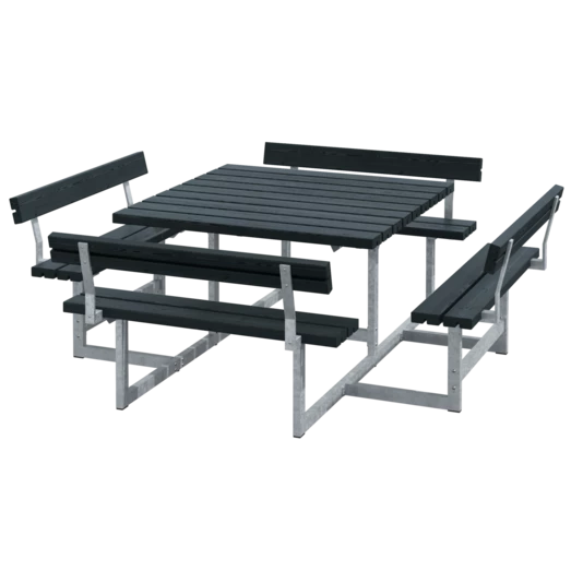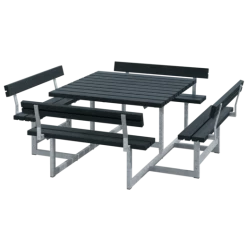 Dette bord/bænkesæt indbyder til at samvær, hyggelige og snaksagelige stunder i de udendøres omgivelser. Her kan rammerne skabes for de hyggelige sommer stunder på terassen, hvor det firkantede bord/bænkesæt indbyder til snak og grin på kryds og tværs af bordet.