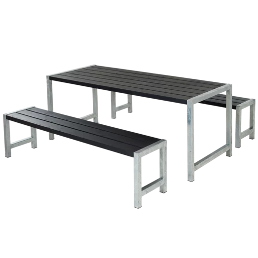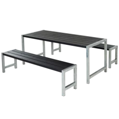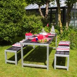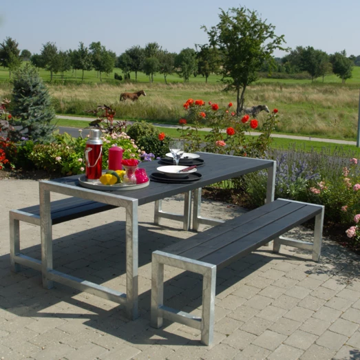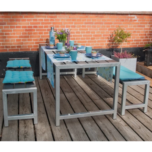 Dette bord/bænkesæt indbyder til at samle familien, rundt om det bordet. Her kan rammerne skabes for de hyggelige sommer stunder på terassen, hvor det firkantede bord/bænkesæt indbyder til snak og grin på kryds og tværs af bordet.