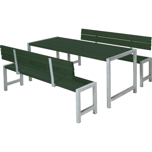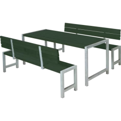 Dette bord/bænkesæt indbyder til at samle familien, rundt om det bordet. Her kan rammerne skabes for de hyggelige sommer stunder på terassen, hvor det firkantede bord/bænkesæt indbyder til snak og grin på kryds og tværs af bordet.