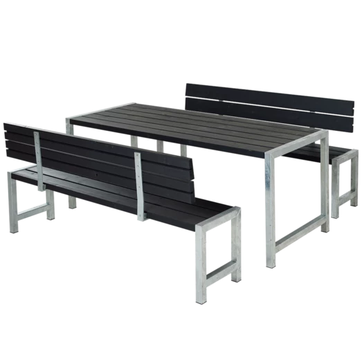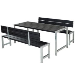 Dette bord/bænkesæt indbyder til at samle familien, rundt om det bordet. Her kan rammerne skabes for de hyggelige sommer stunder på terassen, hvor det firkantede bord/bænkesæt indbyder til snak og grin på kryds og tværs af bordet.