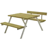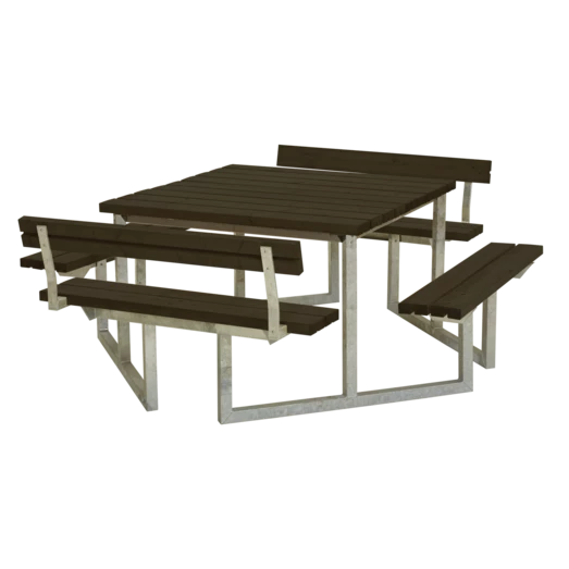 Spændende bord-bænkesæt med skrå ben, som skaber lidt stemning ind til sættet og giver det en skæv kant. Bord/bænkesæt indbyder til at samvær, hyggelige og snaksagelige stunder i de udendøres omgivelser. Her kan rammerne skabes for de hyggelige sommer stunder på terassen, hvor det firkantede bord/bænkesæt indbyder til snak og grin på kryds og tværs af bordet.