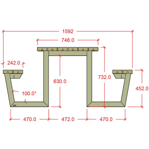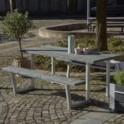 Dette bord/bænkesæt indbyder til at samvær, hyggelige og snaksagelige stunder i de udendøres omgivelser. Her kan rammerne skabes for de hyggelige sommer stunder på terassen, hvor det firkantede bord/bænkesæt indbyder til snak og grin på kryds og tværs af bordet.