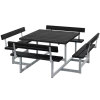 Dette bord/bænkesæt indbyder til at samvær, hyggelige og snaksagelige stunder i de udendøres omgivelser. Her kan rammerne skabes for de hyggelige sommer stunder på terassen, hvor det firkantede bord/bænkesæt indbyder til snak og grin på kryds og tværs af bordet.