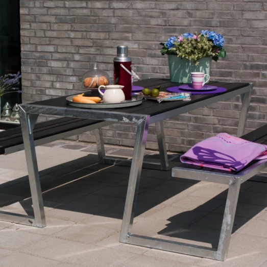 Afslapning ved det moderne og stilrene bord-bænkesæt